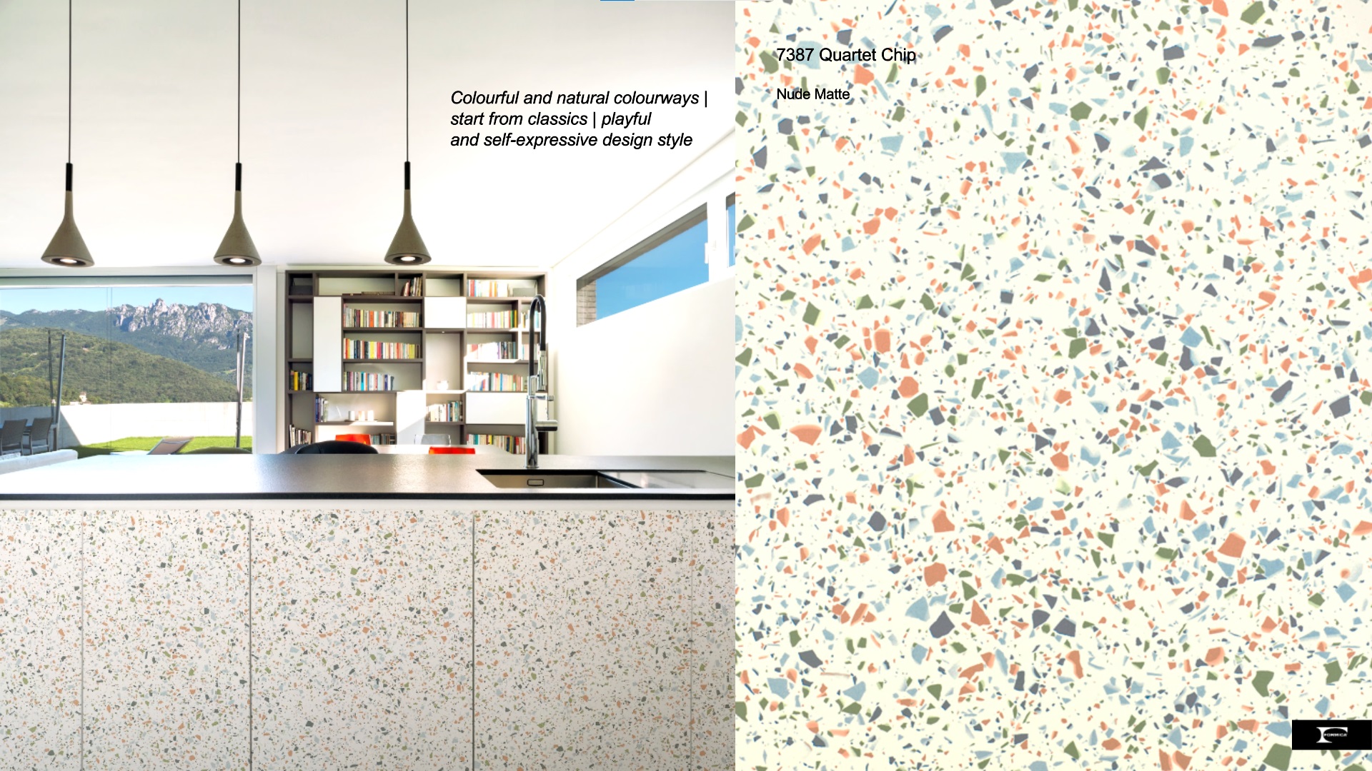 Formica has developed an inimitable version, based on a hand-made piece of terrazzo by UK based designer Olivia Aspinall.