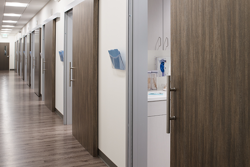 En ce qui a trait à la sélection des matériaux, les directeurs de projets travaillant pour des hôpitaux, des cliniques, et des bureaux médicaux sont à la recherche de matériaux robustes, durables, et en mesure d’enrayer la transmission des infections. « Le contrôle des infections est toujours la préoccupation primordiale des hôpitaux », souligne Donner. « L’équipe au service de la salubrité doit être capable de maintenir les surfaces propres facilement. Les surfaces que nous utilisons doivent donc être en mesure de résister à des nettoyages rigoureux, souvent à l’eau de Javel. » C’est pourquoi il est idéal de choisir des surfaces résistantes et non poreuses pour les comptoirs et la menuiserie d’agencement . Donner a noté qu’en plus de se montrer concernés par la salubrité des produits, ses clients visent à employer des matériaux durables parce qu’ils savent que c’est important pour l’environnement et simplement parce qu’ils sont convaincus que c’est « le bon choix à faire ».