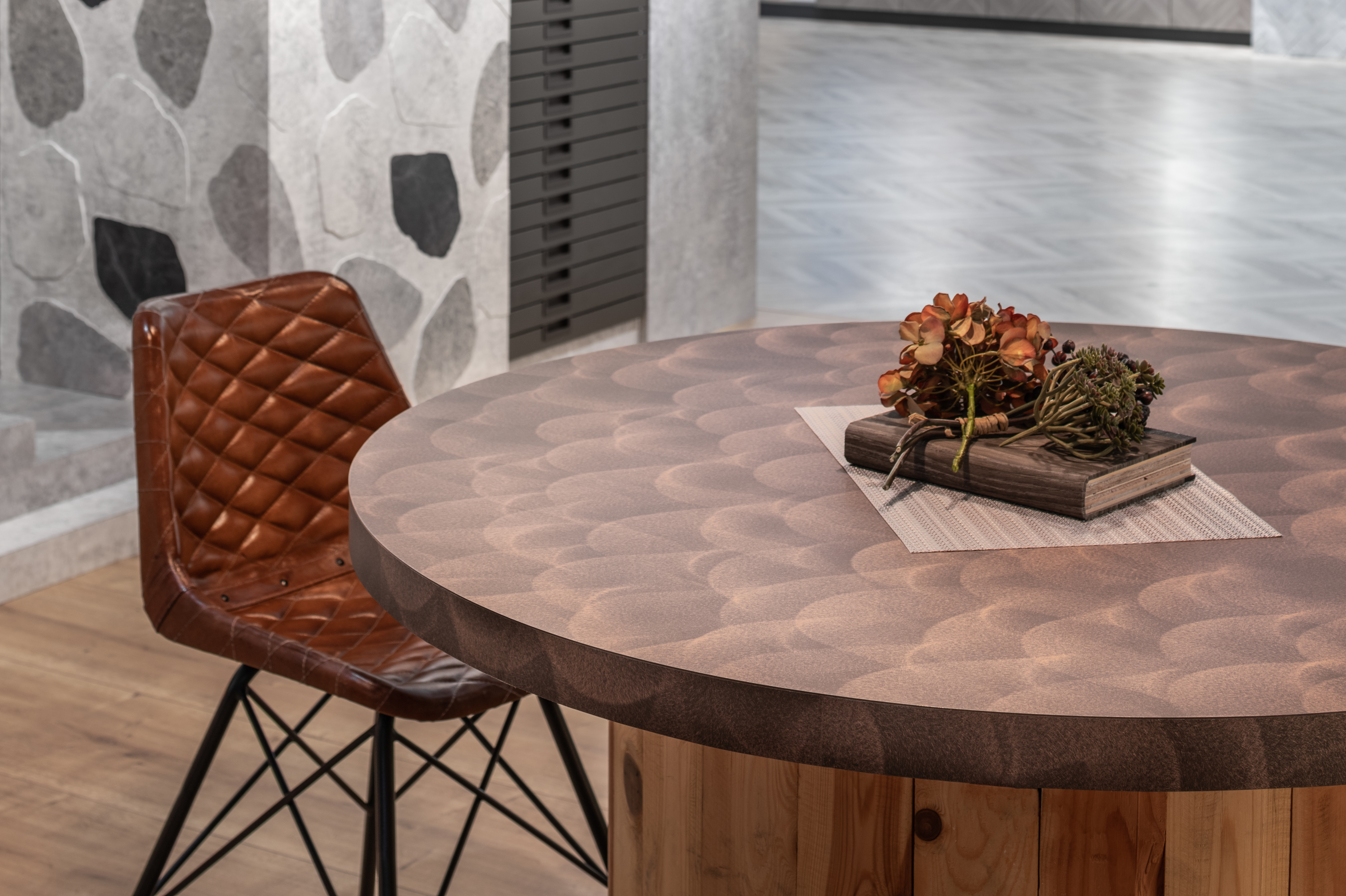 隨著腳步再往前行,彷彿跨越了傳統板材思維的框架。美耐板的便利、金屬難以取代的奢華質感,看似難以兩全的特質,在富美家®金麗®金屬系列完美共生。